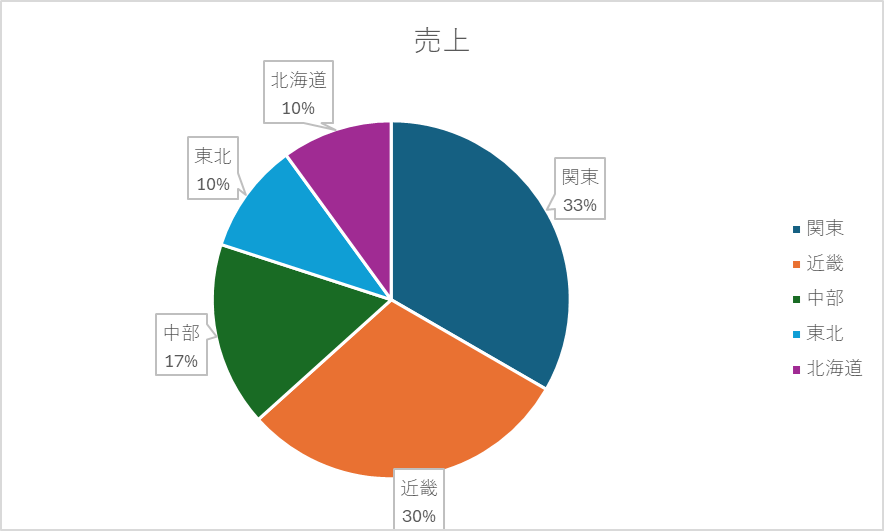 たとえば、地域ごとの売上が知りたいので次のグラフを作成するにしても、都道府県から地域を割り出す必要があります。