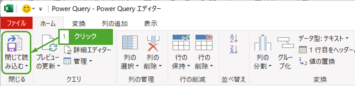 必要なデータ加工が終わったら、「ホーム」タブー「閉じて読み込む」をクリックします。
