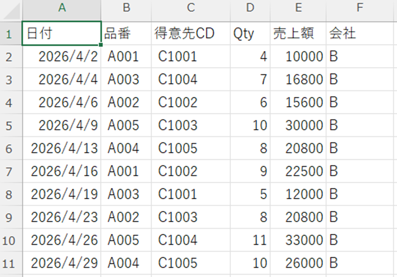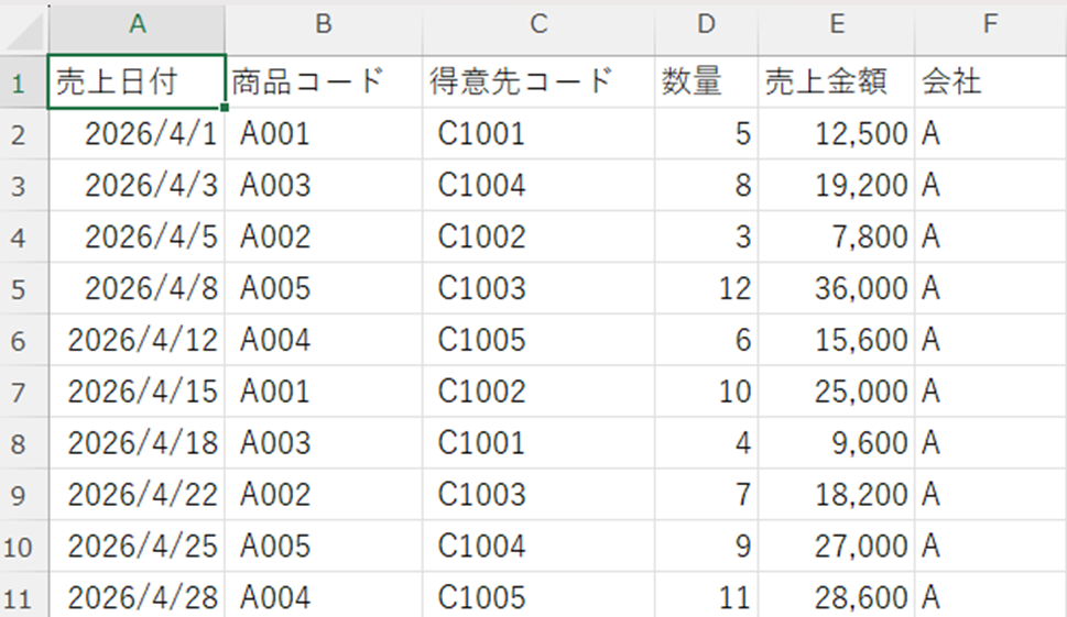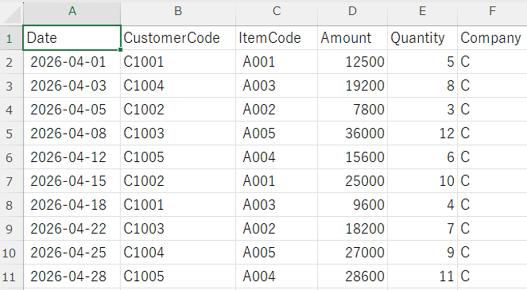 本記事で使用するサンプルデータ