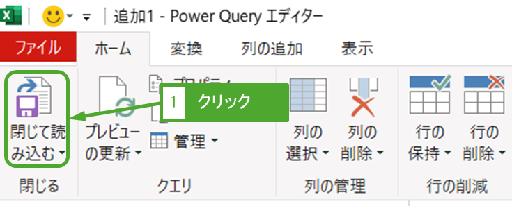「ホーム」タブ ー「閉じて読み込む」をクリックします。